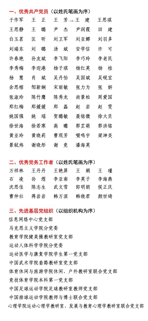 先进基层党组织代表、教育学院健美操教研室党支部书记王艳分享了支部构建的四个党建工作体系:一是筑牢理想信念“压舱石”,构建理论与实践贯通的政治williamhill英国官网体系;二是教学相长齐头并进,构建党建业务有机融合的教学科研体系;三是“以体为本、以体育人”,构建追求卓越的训练竞赛体系;四是党员服务传递匠心,构建“家国情怀、使命担当”的社会服务实践体系。她表示,未来支部将以荣誉为动力,充分发挥战斗堡垒作用,为建设中国特色世界一流体育大学贡献力量。