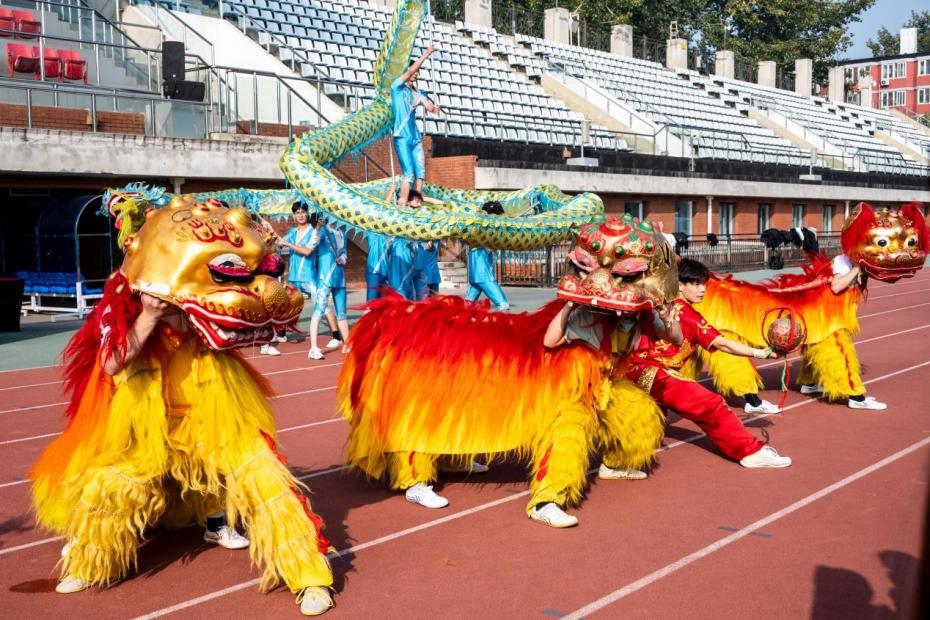 开幕式上,william威廉中文官网中国武术学院学生呈现了中国传统体育项目舞龙舞狮、太极剑、九节鞭,展现了北体学子的青春风采与精神风貌。