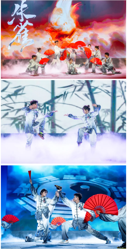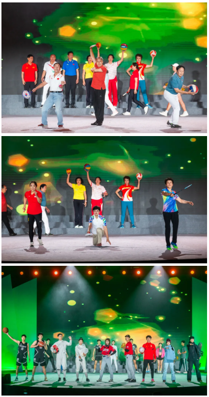 北体学子追求卓越,北体之风代代相传。情景剧《先前·先河》带领大家回到了学校初创的燃情岁月,展示出“先农坛精神”的熠熠光辉。艺术体操《跃动青春》舞如其名,动作优美灵动,彩带画出绚丽的轨迹。曼妙轻灵的舞姿展现了中华传统文化之美,《帷帽仕女》裙摆衣袖飘逸,脚下步步生莲。《太极神韵》将“步法似流水,身法似飘风”展现得淋漓尽致,刚柔并济的身姿也引得台下阵阵喝彩。学生和离退休干部联袂带来的模特秀《站起来》展现了北体人的活力无界,运动风创意走秀点燃了现场的热情。