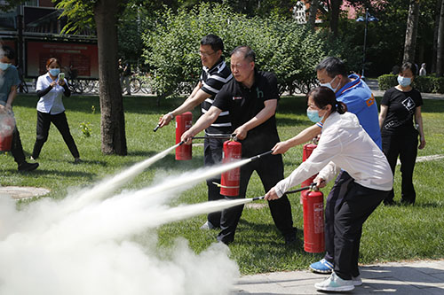启动仪式后,学校在北一楼学生公寓、餐饮大楼广场、校医院等地分别组织开展消防应急疏散和灭火演练。演练的主要内容包括应急疏散、火场疏散、消防装备操作与使用、现场灭火。