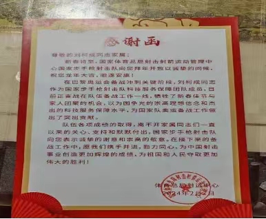 因为备战过程中选拔任务紧张,长期驻队成员牺牲了春节与家人的团聚,毫不犹豫地选择留在队伍,继续保障运动员各项工作任务,射击队部也特地给成员的家人们邮寄了感谢信,这便是独属于他们的双向奔赴。